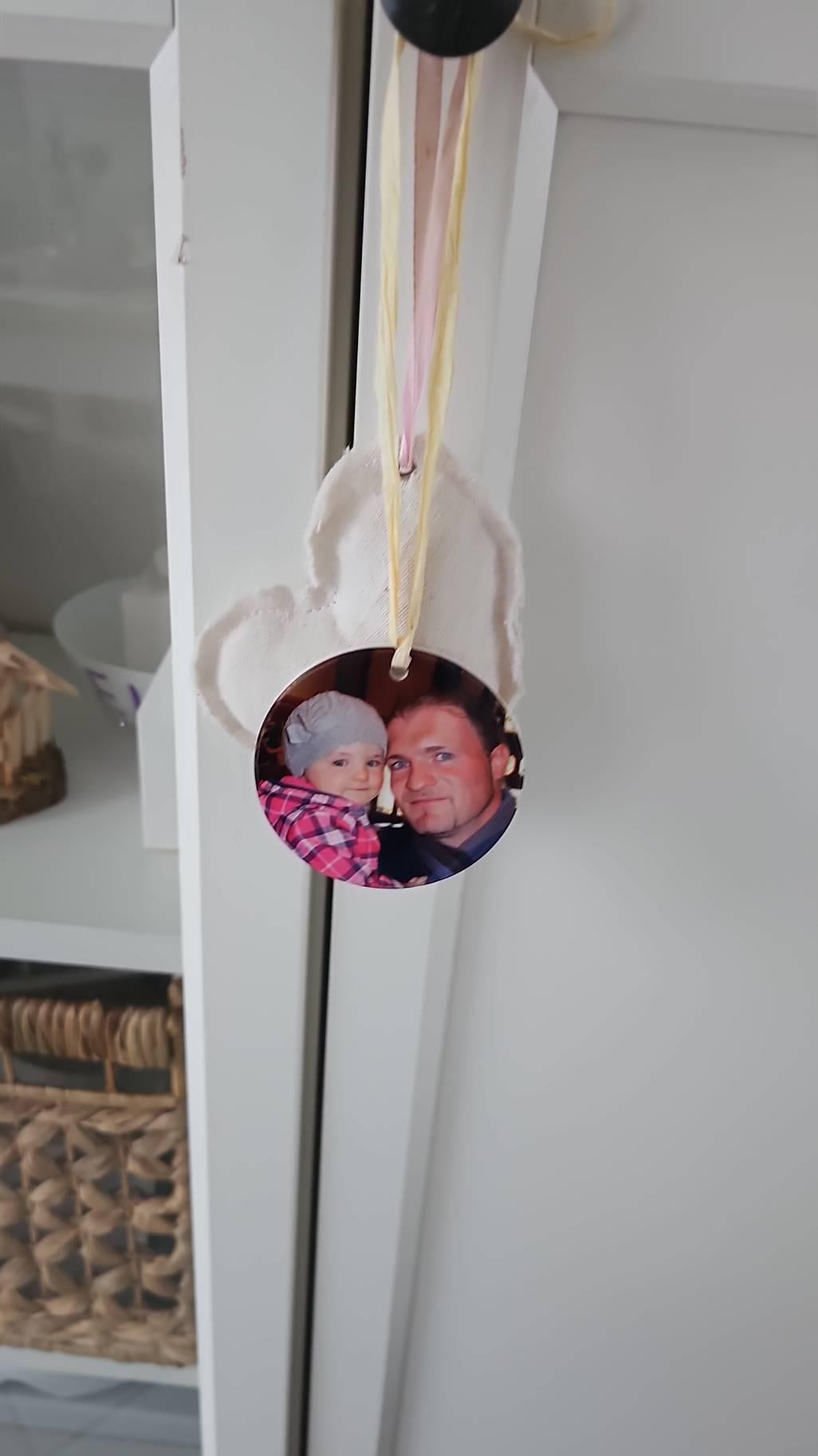 Round ceramic ornament with photo - personalized decoration: gift for family, parents or pet - perfect for Valentine's Day and Easter!