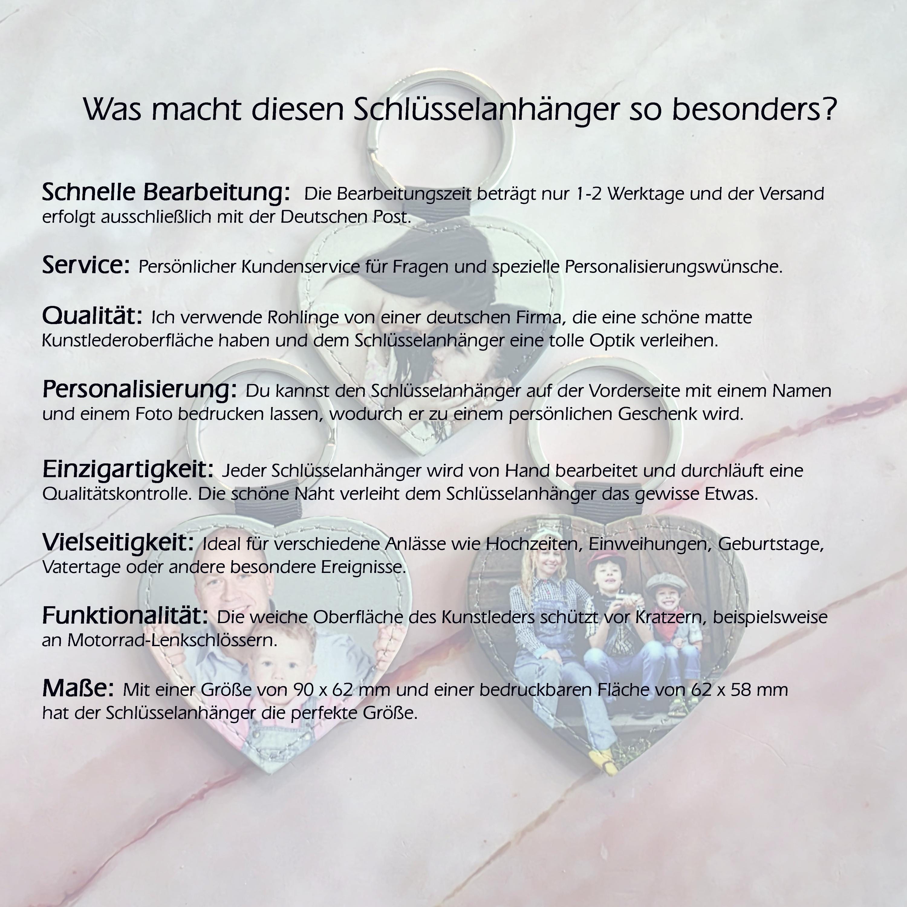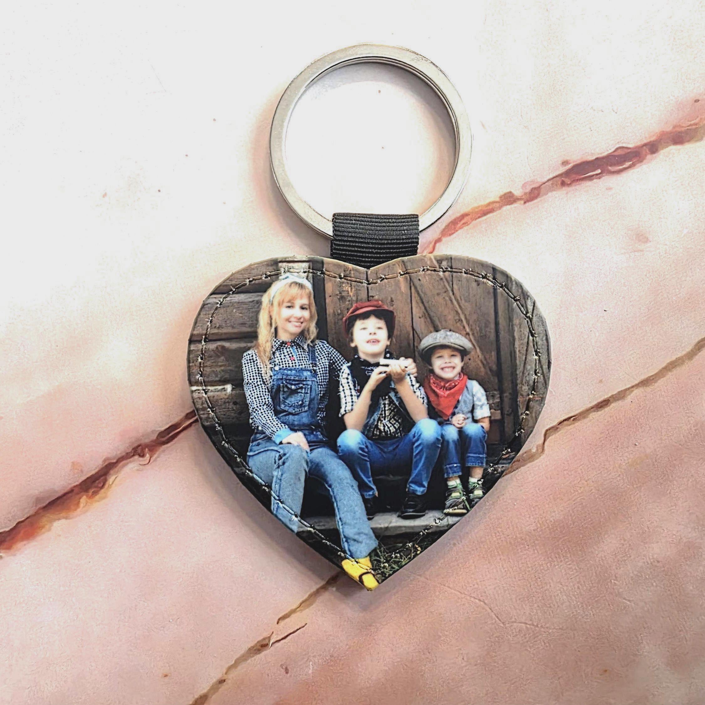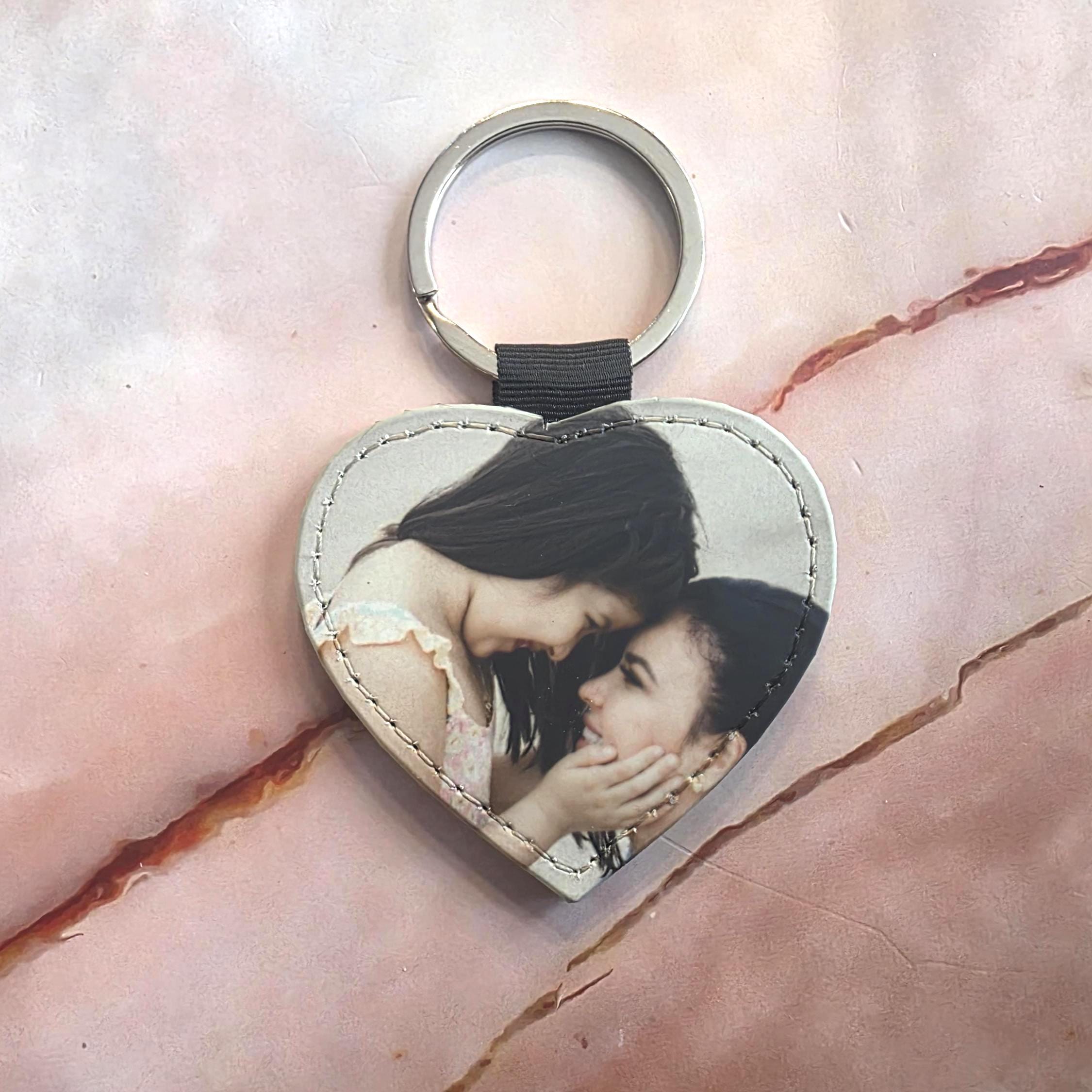 ❤️ Photo keychain heart made of faux leather – personalized with your picture (62 × 58 mm)