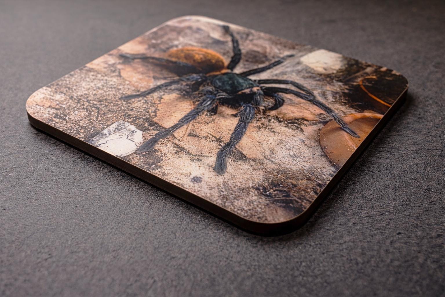 The coaster is not only practical, but also decorative and a special gift idea for terrarium fans, spider keepers, reptile lovers and friends of exotic pets.
